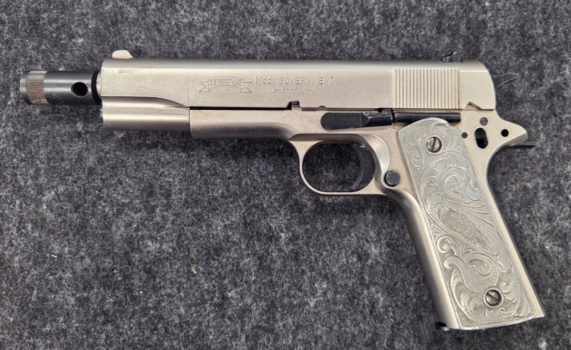 Waffe ist leider defekt, könnte aber aufgrund der seltenheit mit Teilen einer anderen IWG Government komplettiert werden. Es fehlen Teile und die Waffe lässt sich nicht abschlagen. Waffe wird ausdrücklich als defekt verkauft