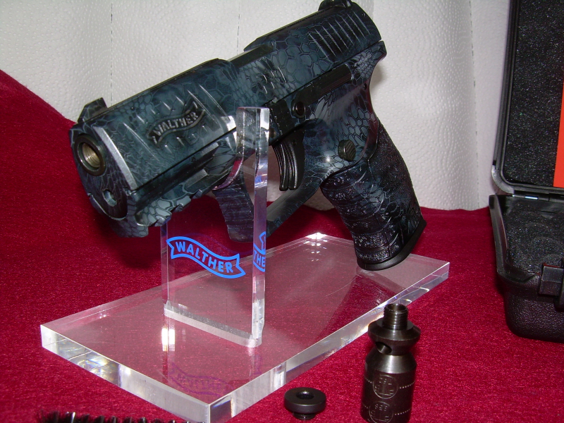 Dazu gehört ein Gewindeschoner und ein orginal Walther Waffenständer und der orginale Waffenkoffer....