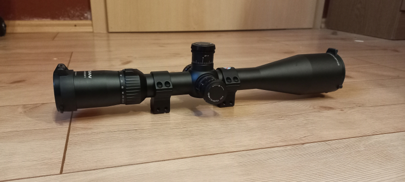 Angeboten wird ein Optisan EVX 6-24X50F1 der 1. Generation mit montierten Flip-Caps.