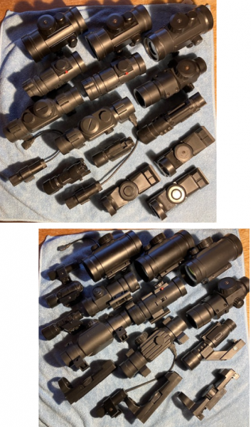 Riesiges Konvolut an RedDot-Leuchtpunktvisieren, Weaver-/Picatinnyschienen, Minilampen und vieles mehr