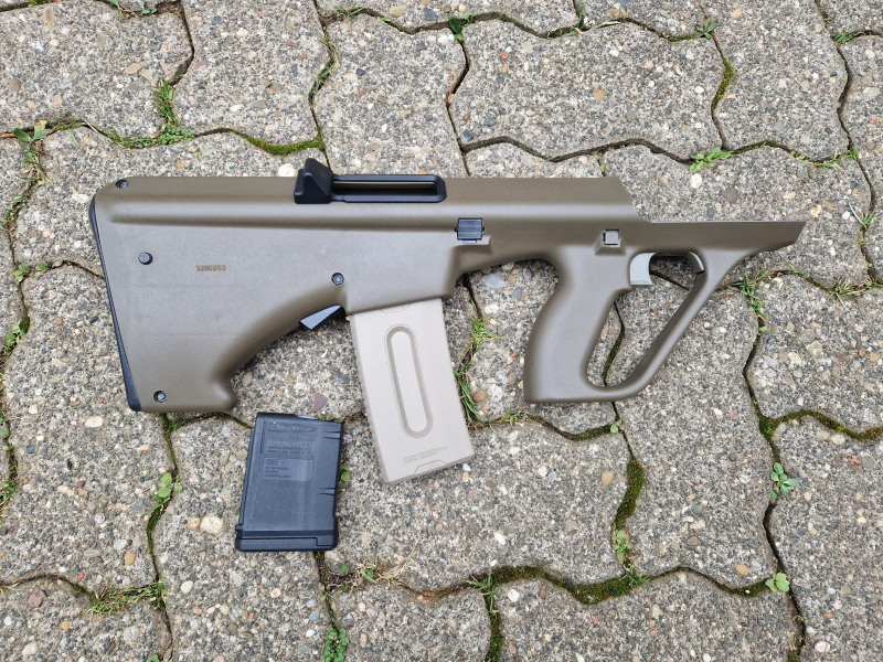 Der Nato Schaft für Steyr AUG macht es möglich .223 Rem Ar15 Magazine zu verwenden. Die Schlageinrichtung ist im Lieferumfang enthalten. Der Schaft passt für die Varianten AUG Z A3 / AUG A3 SA /Police, Swat usw.)