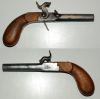 Perkussionspistole mit Seitenhammer, wahrscheinlich belgisch, Hahn in Fischform, stärker überarbeitet und dennoch verbliebene Roststellen, Lauflänge 98 mm, Gesamtlänge 21,7 cm, Kaliber 11,7 mm, das System hakt etwas ist aber technisch funktionsbereit