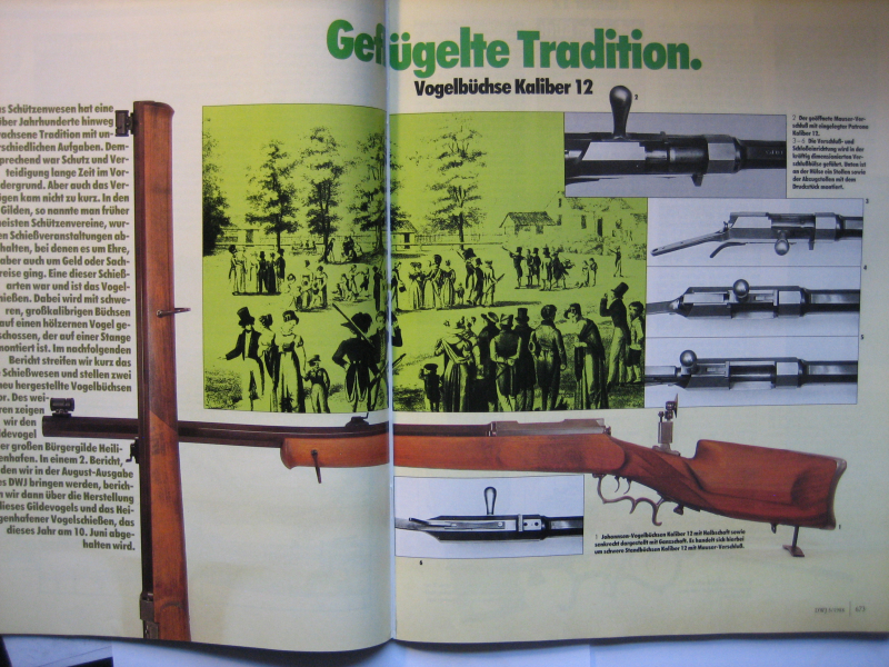 Für Sammler und Gewehrschützen +++ angeboten wird ein älteres DWJ - Heft mit einem sehr interessanten Bericht ++ ** Geflügelte Tradition -- Vogelbüchse Kaliber 12 ** +++ Das Schützenwesen hat eine über Jahrhunderte hinweg gewachsene Tradition. In den Gilden, so nannte man früher die Schützenvereine, wurden die Schießveranstaltungen abgehalten. -- In dem Beitrag (6 Seiten) wird das alte Schießwesen kurz beschrieben und es werden zwei neu hergestellte Vogelbüchsen vorgestellt. -- Weitere Einzelheiten können Sie in dem Bericht nachlesen. +++ und es gibt noch weitere interessante Berichte- z.B. für Sammler von Leuchtpistolen (6 Seiten) - **Lichtzauber -- Die niederländischen Leucht- und Signalpistolen 1918 bis 1940 ** +++ Das Heft ist gebraucht, befindet sich aber in einem sehr guten Zustand. +++ Der Versand erfolgt als Großbrief mit DHL (unversichert) ; die Versandkosten gelten nur für Deutschland. +++ Bieter aus dem Ausland bitte Versandkosten vor Gebot erfragen. +++ Versandrabatt möglich, sehen Sie auch meine anderen Angebote. +++ Privatverkauf, daher keine Gewährleistung, Garantie oder Rücknahme 5-88 +++ Fragen bitte mailen.