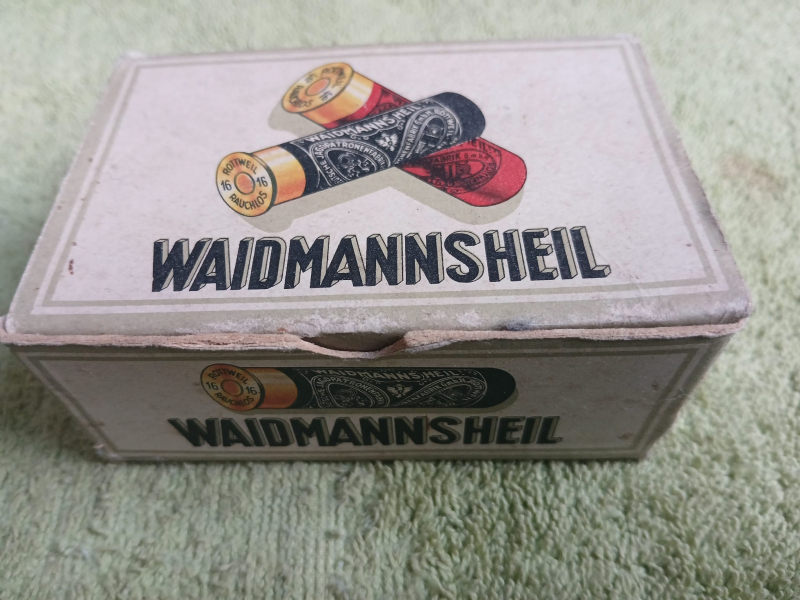Aus Nachlass eines verstorbenen Jägers: Historische LEERE Schrotpatronenschachtel(Flintenlaufgeschoss) der Marke Deutsche Jagdpatronenfabrik Rottweil im Kaliber 16/65.