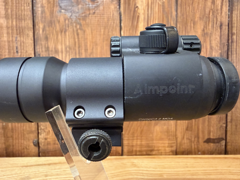 Gebrauchtes Aimpoint C3 2 MOA mit 30mm Mittelrohrdurchmesser inclusive Montage für Weaver oder Picatinny Schiene. Voll funktionstüchtig wenige Gebrauchsspuren am Gehäuse ( siehe Fotos ), Linsen Kratzer und Schlieren frei. Lieferung incl. Objektivdeckel.