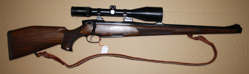Wunderschöner Mehrlader Repetierer von Steyr Mannlicher Modell "Luxus" Stutzen im Kal. 6,5x57 mit montiertem ZF Kahles Helia-S 3-12x56 mit Absehen 1 auf Schwenk-Montage. Die Büchse wurde nie jagdlich geführt, sondern war immer das "wohl behütete Schmuckstück" eines Liebhabers. Fast wie neu! Alte Einzellade-Blockierung, die vom Büchsenmacher wieder schonend entfernt wurde.