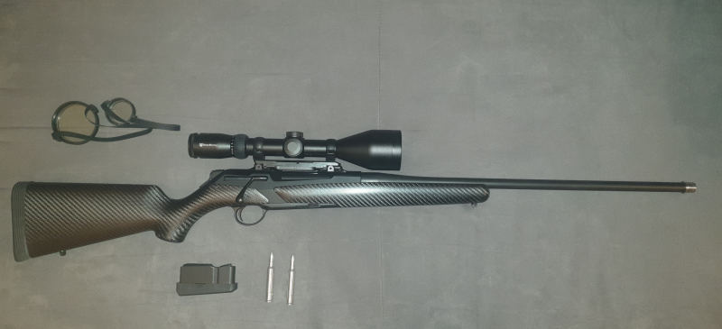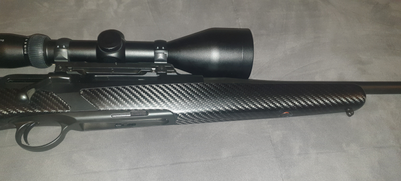 Mit Dentler Wechselmontage (Glas damit sehr leicht und schnell abnehmbar) und Nikko Stirling 3-12 × 62mm.
