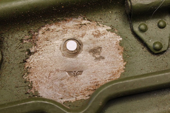 Noch Gut erhalten. Unbeschädigt. Die Farbe an den Stempeln mit einem Brenner gelöst und frei gebürstet, sonst unberührt. Die Farbe ist natürlich nicht Original.