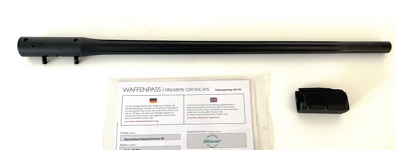 Zum Verkauf kommt ein Blaser Wechsellauf 10,3 x 68 in semi-weight kanneliert, 58 cm ohne Visierung mit original Blaser Gewinde M17x1 und natürlich passendem Magazin. Der Lauf wurde von mir neu gekauft, Rechnung und Waffenpass werden gerne mitgeliefert. Die Präzision ist einmalig, die Schussbelastung sehr gering. Ich verkaufe aus Zeitgründen. Auf Wunsch werden Ladedaten mit Prüfung Beschussamt Ulm zur Verfügung gestellt (Geschoss Aero bleifrei). Weiterhin kann optional folgendes angeboten werden (nicht Teil dieses Angebots!): Hausken WD60 Xtrme Schalldämpfer in Kal 10,3 Triebel BR Setzmatritze 10,3x68 Triebel BR Halsk.-Matritze 10,3x68 125 Hülsen, zT neu, andere 1 x abgeschossen mit diesem Lauf Aero Geschosse 215g Dies ist ein Privatverkauf, daher keine Gewährleistung und Rücknahme. Versicherter Versand ins Ausland zu Preisen von DHL. Viel Spaß beim Bieten!