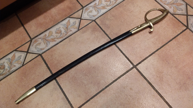 Schlanker Säbel mit Lederscheide, Messingbeschlägen und massivem Messinggriff bzw. Griffbügel (Polizeiwaffe "Plempe"?)