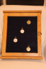 Die Vitrine ist 53,5 x 43,5 x 9 cm groß, aus massivem geöltem Eichenholz zur Aufhängung an der Wand.