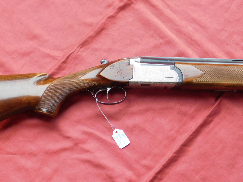 Gebrauchte Bockdoppelflinte Hersteller Dynamit Nobel Fasan Kal. 12/70, Läufe innen blank, 1/4 und 3/4 Choke ** und ****, Verschluss noch fest und dicht. Gültiger Beschuss vorhanden, kein Stahlschrotbeschuss sichtbar. Doppelabzug, Schaftlänge 36,5 cm, Lauflänge 70 cm, mit Ejektor.