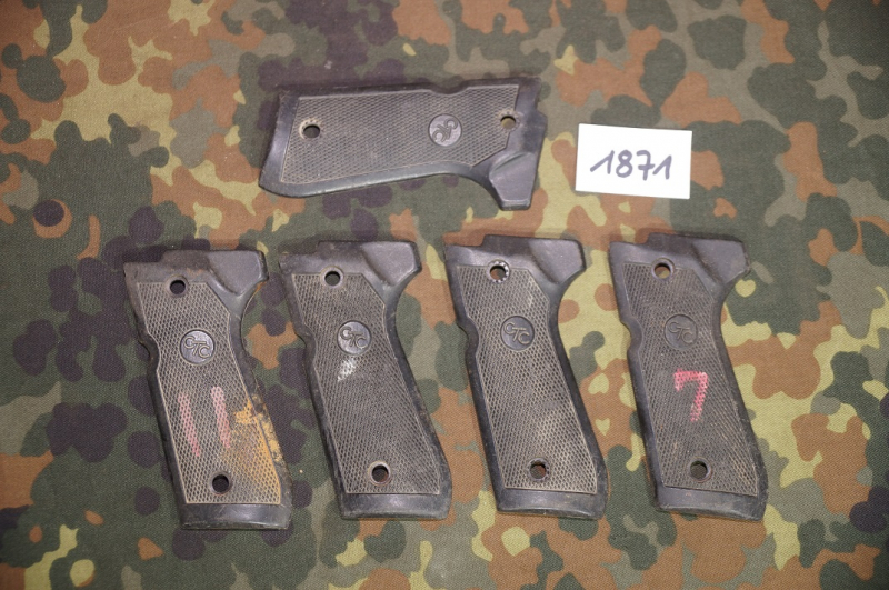 Achtung aufgepasst: sie bieten hier auf 5 Stück Griffschalen (linke Seite) für die Beretta 92 original von der US ARMY. Zustand, siehe Foto. Sie erhalten genau die auf dem Foto abgebildeten Ersatzteile. Beachten Sie auch unsere weiteren Auktionen.