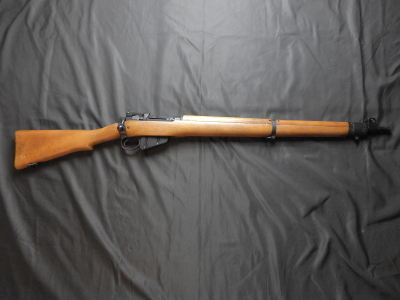 Sie Bieten auf eine Repetierbüchse Lee Enfield No.4 MK2 im Kaliber .303 British. Das Gewehr befindet sich in einem nahezu neuwertigen Zustand. Es hat ein abnehmbares 10 Schuss Magazin. Lauf, Hülse, Verschluss, Magazin und Schaft sind nummerngleich, das Gewehr wurde fast nicht geschossen und stand nur im Schrank.
