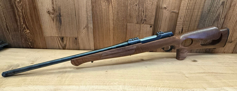 Dieses Gewehr vereint die Schönheit von Holz und Stahl in seiner puristischen Optik. Reduktion und Einfachheit stehen hier im Vordergrund und lassen nichts von der reinen Konzentration auf Funktion und Optik ablenken. Erst bei genauerem Betrachten eröffnet sich die wahre Komplexität und das präzise Zusammenspiel auf Hightech-Niveau dieses Gewehres. Es ist ein wahrer Blickfang, der sowohl bei Kennern als auch bei Neulingen Bewunderung hervorruft.