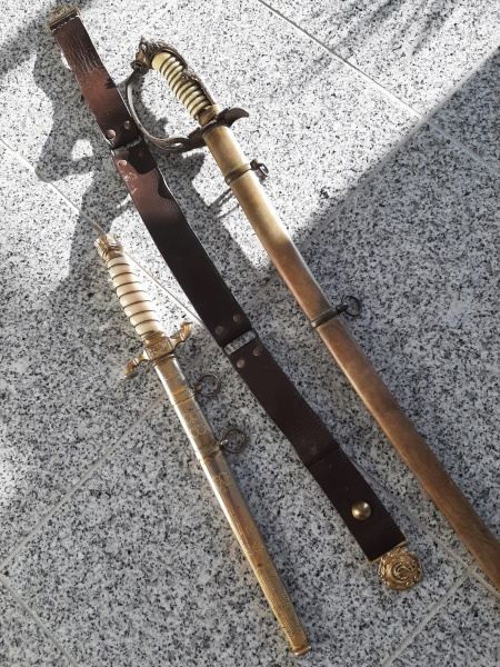 ich biete einen türkischen Marinedolch, einen türkischen Marinesäbel und ein Koppel an.