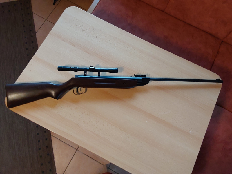 Verkaufe hier ein Luftgewehr 4,5 mm der Marke Umarex Modell 62 mit Zielfernrohr, hat keine Rostpickel und ist in einem sehr gutem Zustand und mit gutem Druck, etwas mehr als 7 Joule. Keine Garantie, Gewährleistung und auch keine Rückgabe.