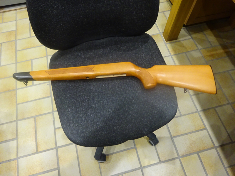 neuwertiger sehr schöner Gewehrschaft mit langer Systemausfräsung bitte beachten, Edelholzabschluß und Messingdraht-Einlegearbeiten, Länge 78 cm, siehe Fotos und mein egun