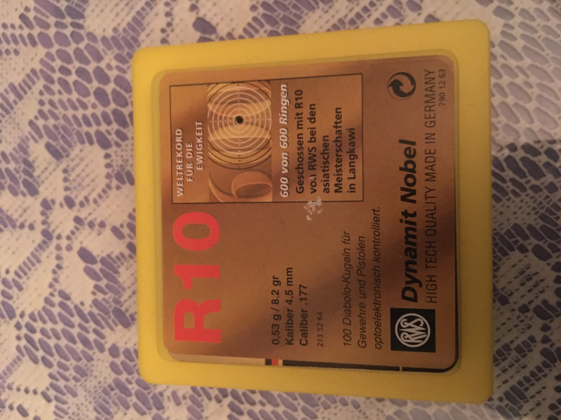 Ich verkaufe hier von der Marke RWS Dynamit Nobel R10 200 Stück Orginal verpackt neuware Diabolo -Kugeln für Gewehr und Pistole geeignet Kaliber 4,5 mm 0,53g/8,2 gr. Habe von der Munition noch viel da bei Interesse einfach anschreiben mit preis Vorstellung