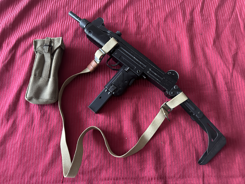 Gelegenheit aus großer Sammlung für den Kenner! Das Beste für den Sammler /Kenner/ UZI-Liebhaber !Original Japan -SMG Uzi ,Marushin -Firecaps Blowback ,berühmt bei einigen Filmszenen durch sehr gute Efekte während der Schüsse,absolut wie die originale UZI aufgebaut und Funktion,umschalten Einzel- /Dauer ,Hülsenauswurf,Rauchentwiclung, usw ..Die Hülsen werden aufgeschraubt und mit kleinen Treibzündhütchen geladen(nicht im Lieferumfang enthalten) Funktion ,spannen,abschlagen,umschalten alles einwandfrei. Komplett zerlegbar,Magazin,Klappschaft ,Magazin aus Stahl,Rest aus Alu/Metall, Kunststoff usw..Sehr hochwertig,Gewicht Ca.3 kg.Damals in geringer Stückzahl vertrieben.Sehr begehrtes Sammlerstück für Film/Theaterzwecke usw..Sammler /Kenner wissen hier Bescheid.Incl.orig.Uzi Riemen und Mag.Tasche wie ersichtlich.Die Bilder als Beschreibung beachten.Erwerb &Besitz ist für solche Waffen Frei ab 18 !Von privat ab 1 € ohne Rücknahme.EU-Ausland Versandkosten 35€.
