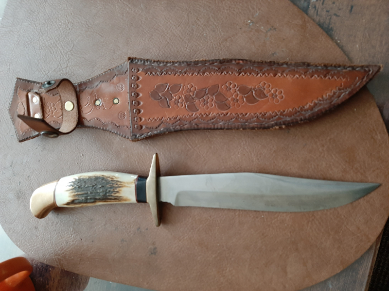 Gebrauchter Hirschfänger, Klingenlänge 18 cm, Hirschhorngriff,