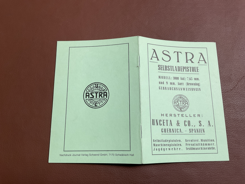 Gebrauchsanweisung Unceta & Co Astra Mod. 3000 Kal. 7,65mm und 9 mm