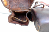 Biete hier eine originale breitere Patronentasche für das Gewehr 98 aus dem 1. Weltkrieg zum verkauf an. Der Hersteller ist Benny Spiro aus Hamburg von 1915, wie man es auf dem Bild auch gut sehen kann. Zum Zustand muss ich leider sagen, dass der Vorbesitzer von den zwei Taschen vorne, vom Leder etwas herausgeschnitten hat. Das Leder ist noch relativ beweglich. Die Stege zur Trennung der Patronenstreifen sind bei allen drei Taschen vorhanden. Bei den Laschen fehlt eine und die andere liegt lose bei. Jede diese einzelnen Taschen konnte mit 3 Ladestreifen 8mm Mauser beladen werden, anstatt nur mit 2 Ladestreifen. Die Naht an der letzten Tasche wurde anscheinend getrennt. Die Metallteile sind rostig. Wird hier ausschließlich als Ersatzteilspender, Restaurierungsobjekt oder beleg Stück angeboten. Sprich, das es Defekt ist. Bilder zeigen auch den Zustand der angebotenen Ware an und sind Teil der Auktion. Beim Händler werden diese Stücke, auch in diesem Zustand relativ Hochpreisig zum verkauf angeboten, ich stelle es hier zum fairen Startgebot von einem Euro ein.