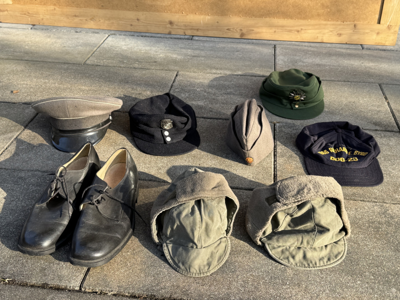 Konvolut gebrauchte Mützen,Schuhe-Militär,Polizei,US-Marine,Feuerwehr-müsste alles Nachkriegsfertigung sein.