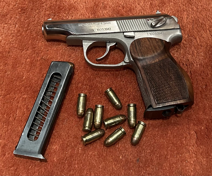 Hallo verkaufe hier aus meiner Sammlung eine Makarov MP-654K 4,5mm T16053943 in Chrom Ausführungen mit Echtholzgriffschalen sowie ein Magazin mit Decopatronen so wie auf dem Foto da Privat Kauf keine Garantie Rücknahme und Gewährleistung. Sollten noch Fragen oder Bilder benötigt werden bitte mailen. Viel Spaß beim bieten