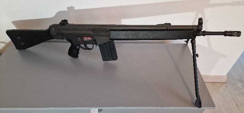 Zum verkauf kommt ein Heckler & Koch G3 SG1 Softair Gewehr. Es wurde selten genutzt und hat nur wenige Gebrauchsspuren. Das Modell verfügt über eine Metallgearbox, eine verstellbare, hintere Visierung eine Halterung für Trageriemen und ein Hop-Up System für ein präziseres Trefferbild.