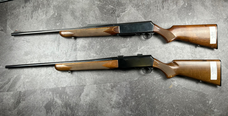 2 Stück FN BAR I, Browning, eine im Kal.300 Win Mag, die zweite im Kal. 30-06, ideal für Büchsenmacher mit einem Ersatzteillager, da die 30-06 nicht richtig repetiert und schließt, wir haben keine Teile mehr bekommen. Inkl. Magazinen, die man auch nicht mehr bekommt, sind dabei. Die 300 Win macht ihre Arbeit noch gut. EAW Basen sind auf der 30-06 montiert.