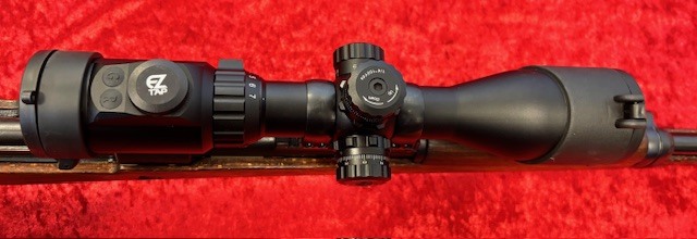 es wurde in das Visier eine ZF Montage eingebaut, mit einem ZF 2-7x44 MiniSwar, Mil Dot, beleuchtet, mit diversen Farben und Lichtstärkenregelung, Parallaxenausgleich,