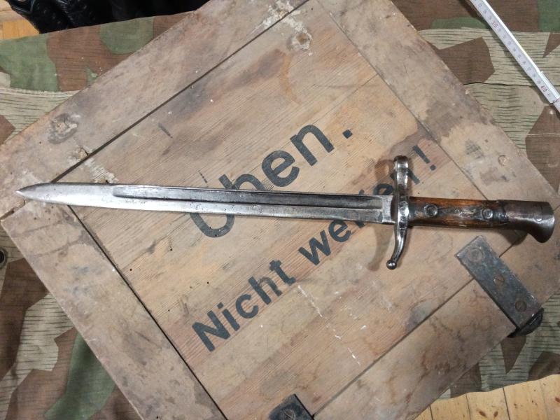 Original Bajonett 2 Weltkrieg könnte ein Italienisches Ternie Bajonett sein. Die dazu passende Scheide ist leider verloren gegangen der Zustand des Bajonetts ist noch recht ansehnlich. Gesamtlänge 41 cm. Viel Spaß beim bieten.