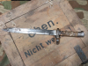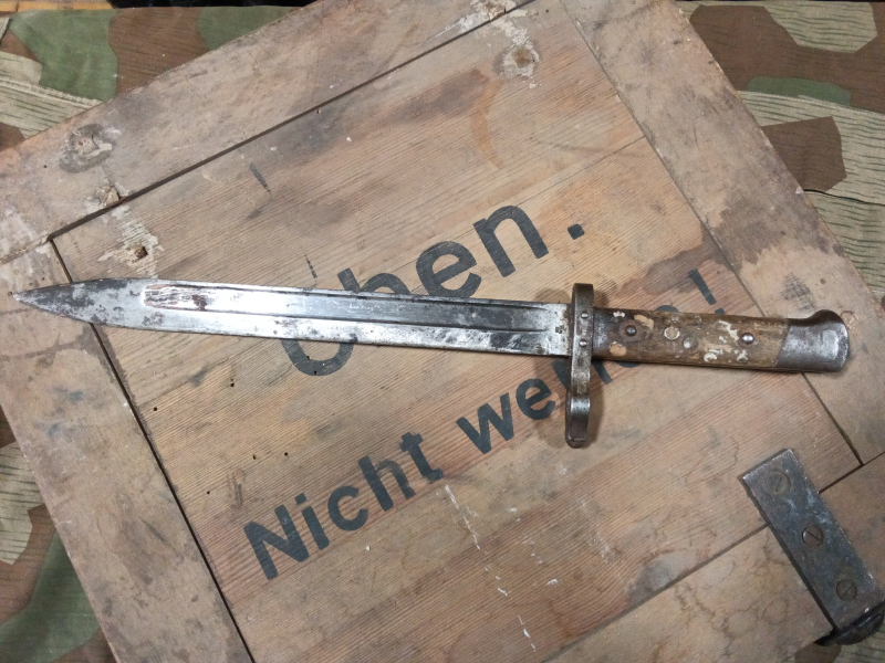 Schönes aber Restaurierungsbedürftiges Bajonett aus dem ersten oder zweiten Weltkrieg ohne Scheide. Hersteller Stempel auf Klinge EWG Gesamtlänge des Bayonettes ist 36 cm. Altersnachweis erforderlich. Viel Spaß beim bieten.