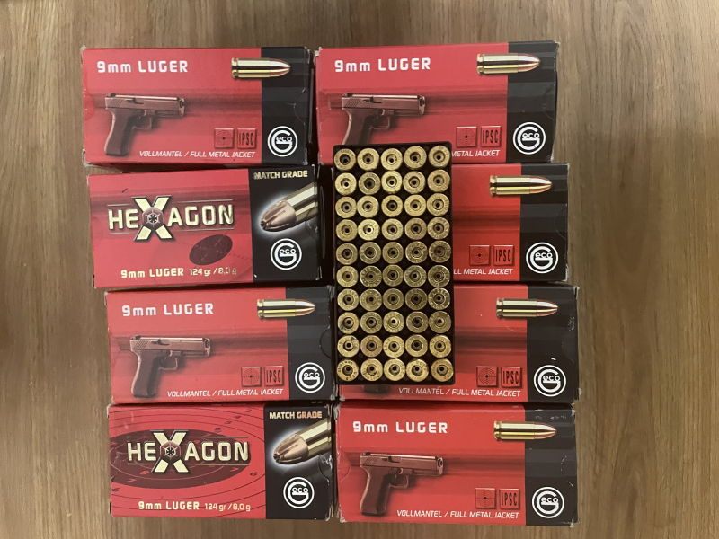 2000 Hülsen, Kaliber 9 mm, Marke Geco. Hülsen wurden im Indoorstand verschossen und aufgesammelt. Danach entzündert und im Tumbler nass mit Edelstahlstiften gereinigt. Hülsen haben Boxerzündung und wurden nicht wiedergeladen. Sortenrein aber nicht losrein.