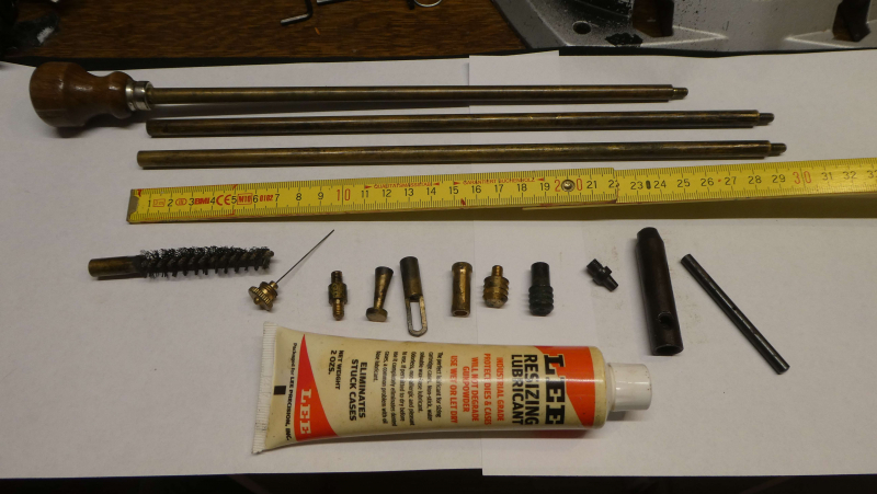 Vorderlader Zubehör Ladestock + Eisätze und Piston. Sehr alt wahrscheinlich, Material Messing massiv.