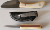 Aus dem Nachlass gebe ich ein kleines schönes seltenes Jagdmesser mit kurzer Klinge in schwarzer Leder-Gürtel-Scheide zur Auktion.