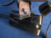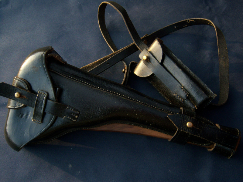Pistolentasche, Koffertasche, Holster aus Schwarzen Sattel-Leder, mit Trageriemen, Doppel - Magazintäschchen und Anschlagbrett mit Aufnahmekupplung. Die Tasche gestempelt mit Herstellerstempel Berlin 1916 Gute Neufertigung einer Tasche mit Anschlagschaft für die lange Pistole 08 wurde für die Disziplin DP3 beim BDMP mit Original Ari 08 genutzt ! Den Zustand entnehmen Sie bitte den Bildern. Als Privatverkäufer schließe ich jegliche Gewährleistung ausdrücklich aus, auch kein Rückgaberecht möglich! Bitte nur bieten, wenn Sie damit einverstanden sind! Fragen bitte vor dem Bieten klären