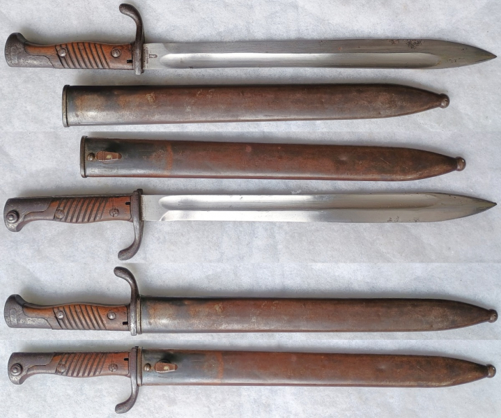 Hersteller J. Corts Sohn Remscheid, Abnahme W16. Feuerschutzblech, Drücker gängig, unmarkierte schwarze Stahlscheide. Gebrauchsspuren.