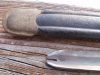Die Klingenspitze ist abgeschliffen und eine art nut eingeschnitten worden .
