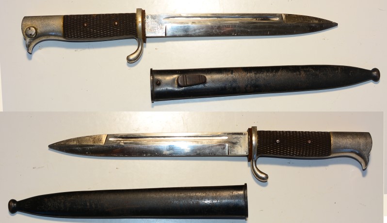 Deutsches Ausgehseitengewehr 2. Weltkrieg, dolchförmige Klinge mit 19,4 cm, Verchromung etwas rau, Heryteller "F.W.Höller Solingen", guter Zustand