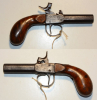 Original Perkussions-Pistole, Lauflänge 5,9 cm, Gesamtlänge 16,5 cm, Kaliber 11,5 mm, kein Beschuss und keine Marke, guter technischer Zustand, Gebrauchs- und Altersspuren, die Hahnform lässt auf Frankreich schließen