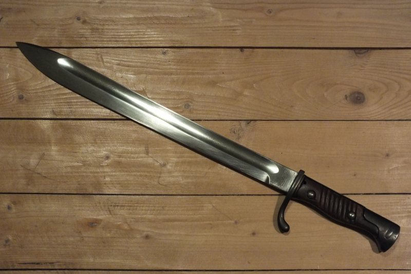 Sie bieten auf ein Deutsches WKI Seitengewehr Modell 98/05 n.A. mit Gebrauchsspuren im guten Zustand. Hier in einer von Sammlern gern geschätzten Variante mit doppelter Herstellerstempelung. Sehr schöne, nicht verputzte Bezeichnungen auf der Klingenaußenseite mit : " SCHUBERT u. SALZER MASCHINENFABRIK CHEMNITZ". Die Innenseite mit Hersteller: " GOTTLIEB HAMMESFAHR SOLINGEN. FOCHE " und mit Firmenloge in Form einer Pyramide mit Grabkreuz. Der Klingenrücken mit Abnahmestempel W 17 unter " Krone" Den weiteren Zustand entnehmen Sie bitte den Bildern. Diese sind auch Bestandteil meiner Artikelbeschreibung. Privatverkauf ohne Gewährleistung und keine Rücknahme.