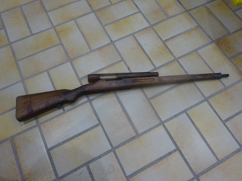 Schaft zum Karabiner K 98 in gutem Zustand mit Handschutz und einigen Anbauteilen wie Bajonetthalter ,Schaftkappe, Riemenbüpgel pp.