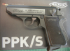 Angeboten wird eine neuwertige, wenig genutzte und in Lizenz im Maßstab 1:1 nachgebaute Walther PPK/S. Aus Altersgründen und mangelnden Gelegenheiten mit der Waffe zu schießen, biete ich diese Waffe mit einem Reservemagazin und etlichen Alukugeln sowie mit einer Originalverpackung zum Kauf an. Der Neuwert der Waffe mit Reservemagazin beträgt ca. 216 Euro. Zum Angebot gehört ein Plasteteil, das man in das Magazin einführen kann zur Funktionsprobe, ohne Kugeln laden zu müssen.