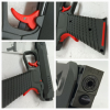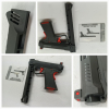 Die Knicklauf-Luftpistole ist klassisch designed. Sie sorgt für optische Highlights durch den roten Abzug und weitere rote Bedienelemente. Die Griffstruktur ist rutschhemmend. Das Modell besteht aus hochwertigem Polymer.