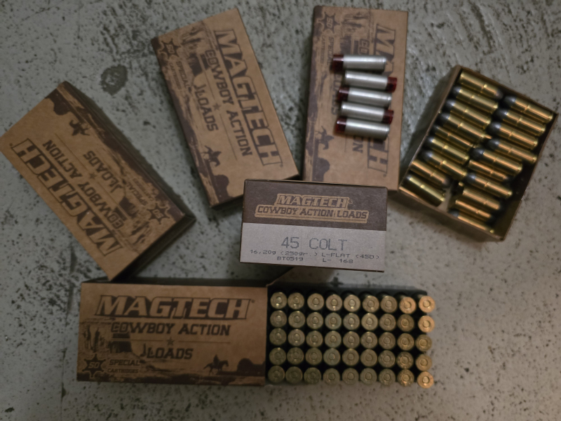 5 Packungen MAGTECH Cowboy Action .45 LC, 42 Patronen lose und 5 CCi Schrot Rot .45 LC