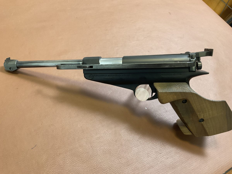 Zum Verkauf steht eine Sportluftpistole Feinwerkbau Modell 65 im Kaliber 4,5 mm, Seitenspanner‑Ausführung. Die Originalbrünierung weist deutliche Handhabungsspuren auf. Die Pistole ist mit einem rechten Holzgriff ausgestattet, der größenverstellbar ist. Die Waffe ist aktuell voll funktionsfähig. Aufgrund des hohen Alters werden für die Gummidichtungen keine Gewährleistung und keine Rücknahme übernommen. Die Sportpistole ist ordnungsgemäß mit dem „F im Fünfeck“ gekennzeichnet. Achtung: Altersnachweis erforderlich. Kein Verkauf an Personen unter 18 Jahren.