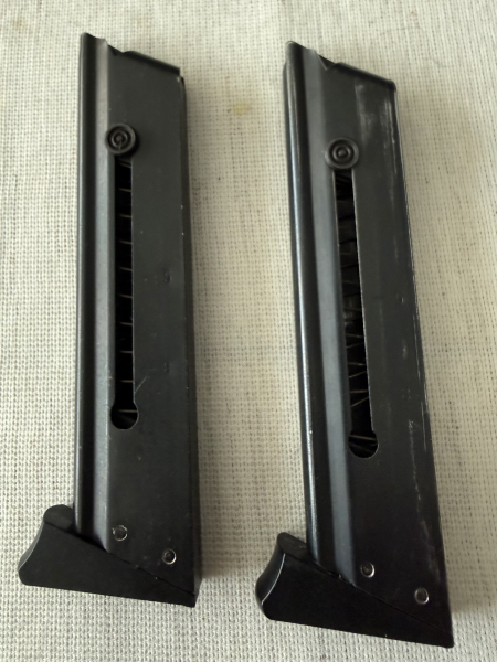 Verkaufe bzw. versteigere hier zwei Magazine für eine Erma Sportpistole Modell ESP 85/ESP 85 A im Kaliber .22 LFB.