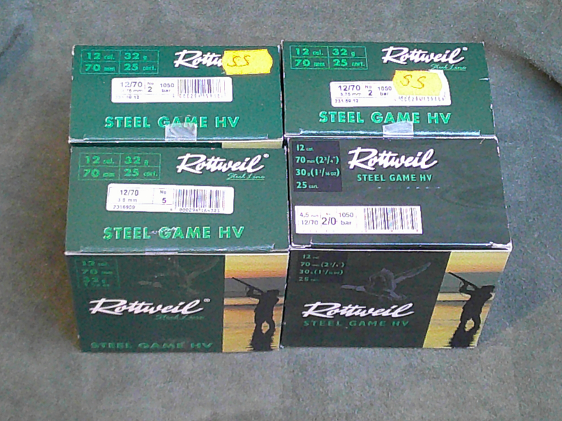 100 Stahlschrotpatronen Kal. 12/70, Rottweil Steel Game HV nur für Flinten mit Stahlschrotbeschuß (25 Stück 3,0 mm, 50 Stück 3,75 mm, 25 Stück 4,5 mm)